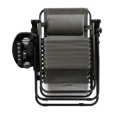 Have the most comfortable seat in the whole neighborhood when you treat yourself to this set of 2 navy zero gravity chairs. Not only does this zero gravity lounge chair set give you amazing weightless comfort, it looks great on the patio or next to your pool as well. This zero gravity recliner chair is designed to suspend your body in a neutral posture, elevate your heart and decompress the spine to help alleviate back and muscle pain that can come from stress or strenuous workouts. The solid metal frame holds up to 250 lbs. to accommodate most users while the breathable mesh back and seat will keep you cool. The side drink tray attaches to either side of the chair to hold a cool drink, your tablet, phone or any other accessories while you settle back and take it easy. Turn the knobs located on the arms to tighten the chair in its reclined position, un-reclined position or anywhere in between for a custom seating experience. The adjustable headrest moves up and down to adapt to your needs. This outdoor gravity lounge chair comes fully assembled so you can enjoy it as soon as you receive it and folds upright for easy storage and portability. Whether you use it outside or in your home this chair lets you experience a weightless sensation that will release tension and allow you to relax and let go of the stresses of the day