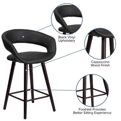 This exquisitely designed black counter stool will add an elegant touch to your home. This upholstered stool will appeal in your kitchen, dining room, bar or game room. The rounded back features a decorative zipper trim design. The durable hardwood frame is stabilized with the included foot ring. The floor glides help protect your floors and ensure smooth gliding, and the lightweight design is easy to move and transport. For attractive and versatile seating, this four-legged stool will fit perfectly in all environments. Additional Features: Footrest provides better sitting experience, Cappuccino Wood Finish, Floor Glides prevent scratches and provide smooth gliding, Designed for Residential Use Only