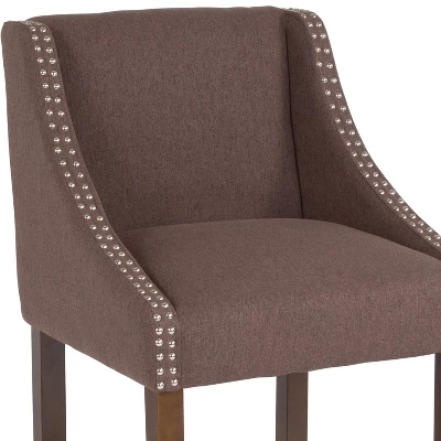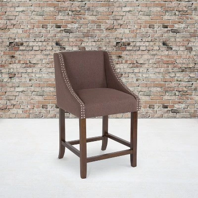Bring warmth and comfort to your home while adding some world class elegance with this classically sophisticated black counter stool. Have breakfast at your kitchen island or hang out with friends around the dining room table in style. Boasting soft and durable LeatherSoft upholstery paired with decorative nail head trim, this counter height stool lends a touch of old world style and comfort to any environment. When hosting guests the last thing you want to worry about is a wobbly chair. The solid wood frame and legs provide a sturdy base for this dining stool that will hold up to 300 lbs weight capacity. An integrated footrest gives your feet a comfortable place to rest and relieves pressure from your legs. The gently curving arms add a touch of whimsy to this upholstered stool and the deep seat, featuring CAL 117 fire retardant foam, is an invitation to lounge, relax and enjoy the atmosphere. Enjoy the comforts of this full back stool anywhere around the home. Spills or soil can be quickly cleaned with water and a neutral detergent. To ensure smooth movement and protection of hard flooring surfaces, glides have been added. Additional Features: Integrated Footrest relieves pressure from the legs to increase circulation, Wooden Frame Finish complements any décor, Floor Protector Glides prevent damage to hard floors, LeatherSoft is leather and polyurethane for added Softness and Durability, Counter height stool for the dining room, kitchen or as extra seating for guests