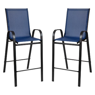 Dine outdoors for breakfast, lunch, and dinner when you have a setting that is just as comfortable as your dining room table. Bar height outdoor table sets add an extra wow factor to your outdoor dining space. The outdoor bistro bar table has attractive bowed legs and glides that protect your flooring when used indoors. Beat the summer heat in the sling style barstools with breathable textilene upholstery. These patio stools allow for easy cleanup after a gathering. The dining stool features a footrest to rest your feet and arms to relieve pressure from your upper body. This pub bar table set adds the perfect companionship to your patio, deck, sunroom, balcony, or pool area.