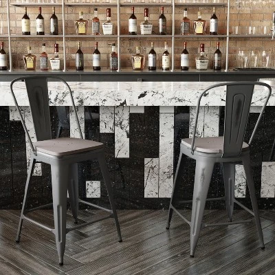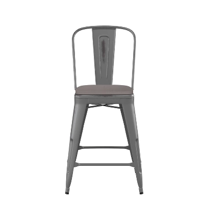 Capture the modern minimalist vibe you love with this metal dining stool with an all-weather polyresin seat. This space-saving stool is stackable for easy floor maintenance and storage. A cross brace underneath the seat adds stability and features plastic caps that prevent the finish from scratching when stacked. The convenient built-in footrest helps reduce the pressure on the legs and lower back to promote optimum relaxation for guests. The legs have protective floor glides that prevent damage to flooring. The seat attaches to the preassembled chair in minutes and cleanup is easy with water and a neutral detergent. The unique, lightweight design of this backless stool makes it an ideal choice for your home.