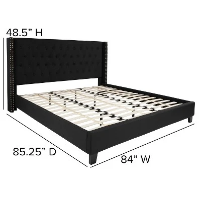 Look no further, you’ve found the bed of your dreams at a price no one will believe. This gorgeous platform bed will keep your bedroom looking fresh for years. This beauty is adorned by nailhead trimming on the protruding sides and has a button tufted panel headboard. The headboard has a decent amount of height to prop yourself up against it. No footboard means you have easy access to make up your bed. The low base frame provides you with an open concept feel. Select your mattress and settle in for peaceful resting knowing that the frame is supported by 45 wooden slats that are designed to support your mattress without the use of a box spring. You deserve a job well done for selecting such a breathtaking bed that will give your space the uplift that you’ve been yearning for.
