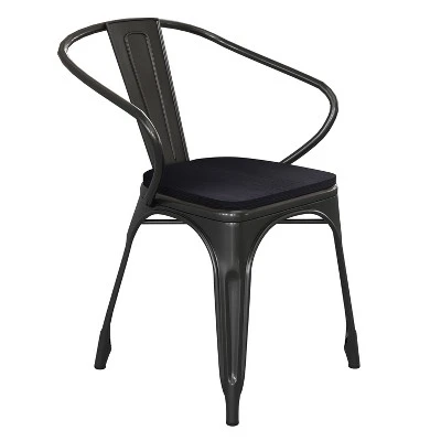 Add a dash of bold style your kitchen, dining room or patio by adding this colorful metal chair with a long-lasting poly resin seat. The simplistic design blends beautifully with any aesthetic or decor for a cohesive look. Featuring a comfortably curved back with a vertical slat, integrated arms, and a stabilizing cross brace, this chair offers support in all the right places. The polystyrene seat attaches to the preassembled chair in minutes and won’t rot, chip, or peel for year-round use. Be a trendsetter with bold colors and modern materials. Mix and match colors for a custom look to showcase your style. Wipe clean with water and a neutral detergent to maintain the appearance. For longevity, care should be taken to protect the frame from long periods of wet weather.