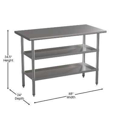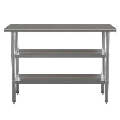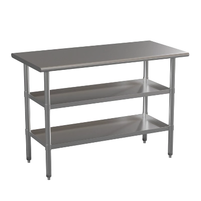 - Stainless Steel Kitchen Prep Table with Dual Adjustable Undershelves