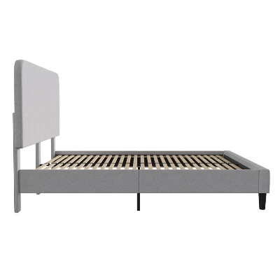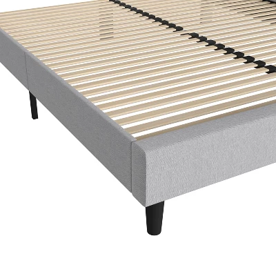 Every good day starts with a good night’s sleep which starts with a comfortable bed. This fabric upholstered platform bed will give you style and comfort in one beautiful package. Featuring a minimalistic design with a curved, slim panel headboard, this bed will add appeal without taking up much space visually to help keep your bedroom feeling open and light. The wooden support slat system with an iron middle support leg eliminates the need for cumbersome box springs or foundations. Simply add your current mattress or pair with one of our Capri Comfortable Sleep hybrid mattresses in a box to rejuvenate your sleep space. The lack of a raised footboard means making your bed will be less of a hassle and the sleek, neutral design gives you the freedom to choose bedding that suits your style and personality without having to worry about clashing colors or patterns. Additional Features: Assembles in 60 Minutes or Less, Wipes Clean with a Damp Cloth, Pair with a Capri Comfortable Sleep Hybrid Mattress in a Box