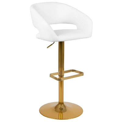 Style and function blend seamlessly in the design of this modern barstool. Featuring a comfortable mid-back design with a cut-out for added detail, this stool offers padded support in all dining settings. Durable fabric upholstery is easy to care for and wipes clean with water and a neutral detergent. The sturdy metal base supports up to 330 lbs. of static weight for worry free seating and has an integrated footrest for added comfort. Put at your kitchen island or bar with the easy gas lift mechanism that allows the 360° swivel seat to adjust from bar to counter height with a lever control. The wide pedestal base offers reliable stability and is fitted with a plastic ring to protect flooring and prevent slipping. For easy upkeep, simply wipe clean with water and a neutral detergent.