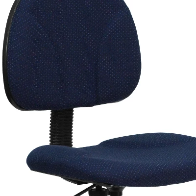 If you sit for long hours throughout the day you may benefit from this black pin dot patterned fabric upholstered drafting chair. Draft chairs are essential for any profession where work surfaces are above standard height, such as lab technicians, architects, graphic artists, or any other creative assignment. They can also make a great chair for any job requiring employees to be at eye contact level with customers, such as receptionists or cashiers. This chair was designed to support the mid-to-upper back region. Chair easily swivels 360 degrees to get the maximum use of your workspace without strain. The pneumatic adjustment lever will allow you to easily adjust the seat to your desired height. The foot ring can also be adjusted to your height preference for added comfort. This versatile chair is sure to make an impact whether it is used in the home or at the office.