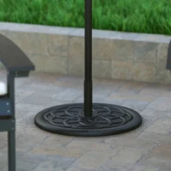 Emma And Oliver Universal Black Cement Patio Umbrella Base – Weatherproof – 19.25″ Diameter