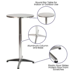 Emma And Oliver Indoor/Outdoor 23.5″H Aluminum Round Bar Height Table With Cross Base