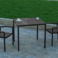 Emma And Oliver Square All-Weather Faux Teak Patio Dining Table With Steel Frame – Seats 4