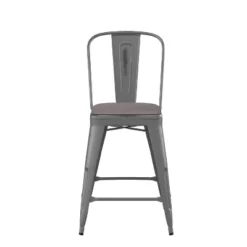 Emma And Oliver Commercial 24″ Round Metal Indoor-Outdoor Bar Table Set & 4 Slat Back Stools