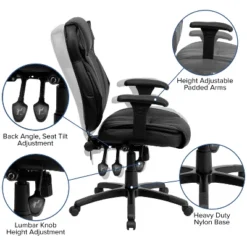 Emma And Oliver High Back Black LeatherSoft Multifunction Ergonomic Office Chair, Lumbar Knob