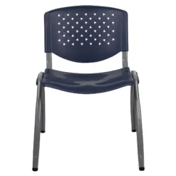 Emma And Oliver Home And Office Navy Plastic Stack Chair With Perforated Back – Guest Chair