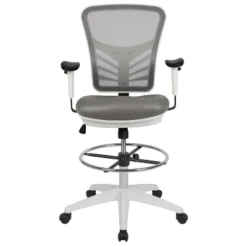 Emma And Oliver Mid-Back Light Gray Mesh Ergonomic Task Office Chair, White Frame – Flip-Up Arms