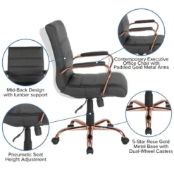 Emma And Oliver Mid-Back Ergonomic Massaging Black LeatherSoft Executive Swivel Office Arm Chair