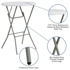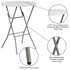 Emma And Oliver 2.6-Foot Round Granite White Plastic Bar Height Folding Event Table