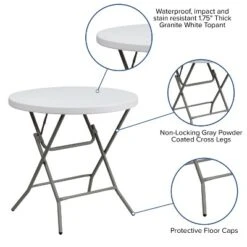Emma And Oliver 2.63-Foot Round Granite White Plastic Folding Table – Event Table